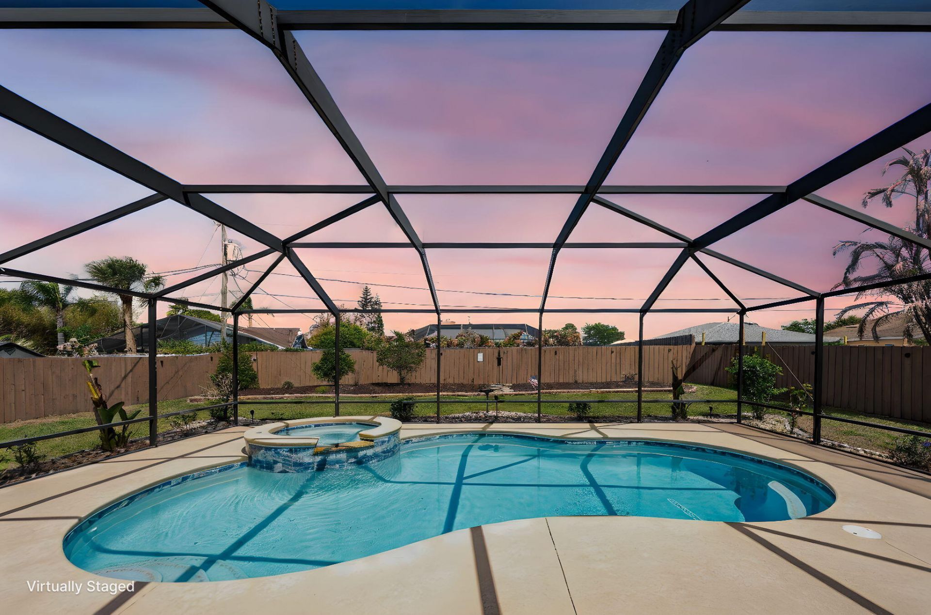Discover this beautiful 3-bedroom, 2-bath, 2 Garage home built in 2019, with CBS construction. Amazing outdoor space featuring a fully screened POOL, SPA, and PATIO that is perfect for sunbathing, relaxing or entertaining. Wide open floor plan with lots of light! Great room concept, spacious owner's suite, and a granite kitchen with all appliances. Generously sized guest bedrooms offer plenty of closet space. Inside laundry includes a washer and dryer!! You will love the beautifully landscaped,...Discover this beautiful 3-bedroom, 2-bath, 2 Garage home built in 2019, with CBS construction. Amazing outdoor space featuring a fully screened POOL, SPA, and PATIO that is perfect for sunbathing, relaxing or entertaining. Wide open floor plan with lots of light! Great room concept, spacious owner's suite, and a granite kitchen with all appliances. Generously sized guest bedrooms offer plenty of closet space. Inside laundry includes a washer and dryer!! You will love the beautifully landscaped, fully fenced yard with storage SHED and outdoor solar lighting. The home is fully equipped with storm panels and a whole-home, standby generator!! Top location just minutes to area beaches, shopping, schools and parks/boat ramps. Very quiet street!